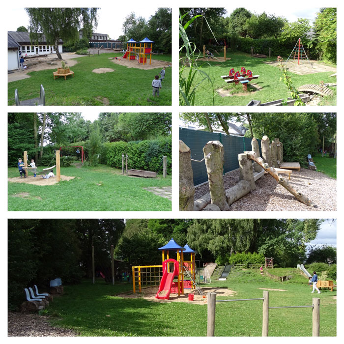 Je nach Witterung beginnt eine Spielphase auf dem großzügig, angelegtem Außengelände unserer Einrichtung. Wir legen Wert darauf, auch bei schlechtem Wetter nach draußen zu gehen, um dem Bewegungsdrang der Kinder zu entsprechen.